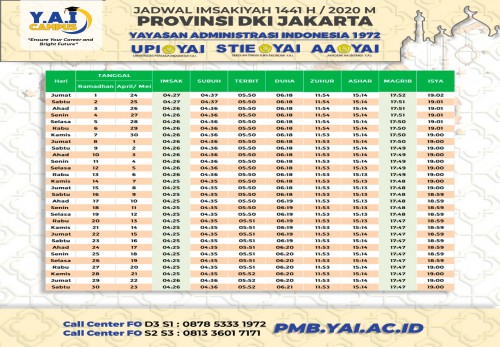 Idul Fitri tahun ini berbeda dari tahun-tahun sebelumnya. Tahun ini takbir itu tetap menggema, tapi bukan di jalan-jalan. Takbir itu kini bergaung di tiap-tiap rumah & masjid. Di rumahku, ibadahku. Di rumahmu, ibadahmu. Kita tetap beribadah, meski hanya di rumah. Bila Idul Fitri adalah lentera, izinkan membuka tabirnya dengan maaf agar cahayanya menembus jiwa fitrah dari tiap khilaf. Kami segenap Keluarga Besar Yayasan Administrasi Indonesia 1972 dan Lembaga Pendidikan Tinggi (UPI Y.A.I - STIE Y.A.I - AA Y.A.I ) mengucapkan: Selamat Hari Raya Idul Fitri 1441H. Minal aidin walfaizin. Mohon maaf lahir dan batin. TAQOBBALALLAHU MINNA WA MINKUM, BARAKALLAHU FIKUM...