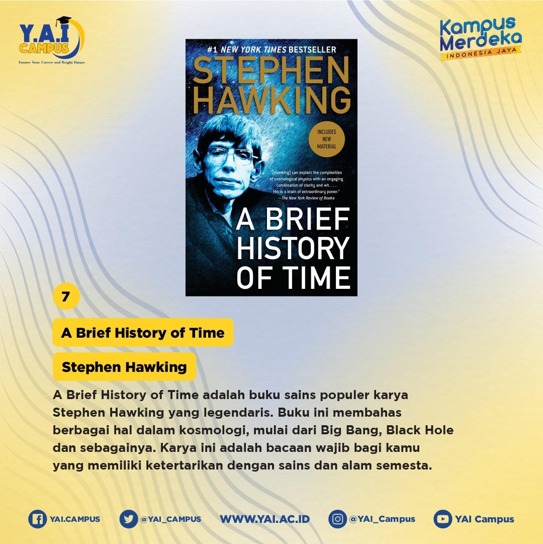 Masa kuliah adalah waktu yang tepat untuk mengeksplorasi banyak hal, termasuk untuk menambah wawasan lewat buku. Ada banyak sekali buku populer di dunia yang disebut-sebut memberikan gagasan dan wawasan yang berguna untuk diterapkan dalam kehidupan sehari-hari. Beberapa di antaranya mungkin merupakan karya klasik yang dibaca oleh semua orang. Nah, berikut adalah rekomendasi buku-buku yang wajib dibaca setelah menjadi mahasiswa yuk kita simak.