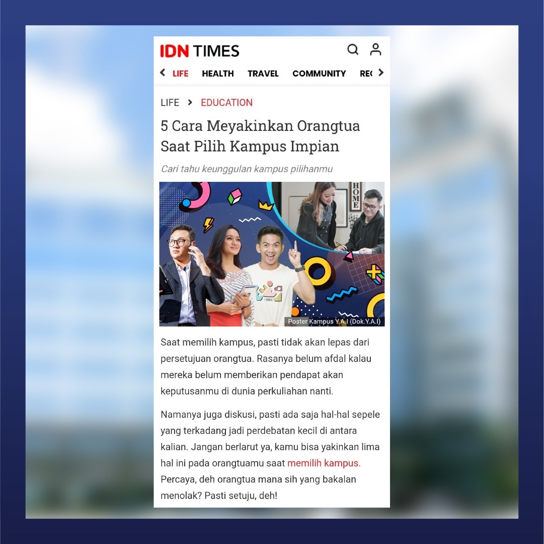 Yuk, baca artikel selanjutnya di link IDN Times berikut : https://www.idntimes.com/life/education/editor-idn-creative/cara-yakinkan-orangtua-pilih-kampus-csc?q=kampus%20yai