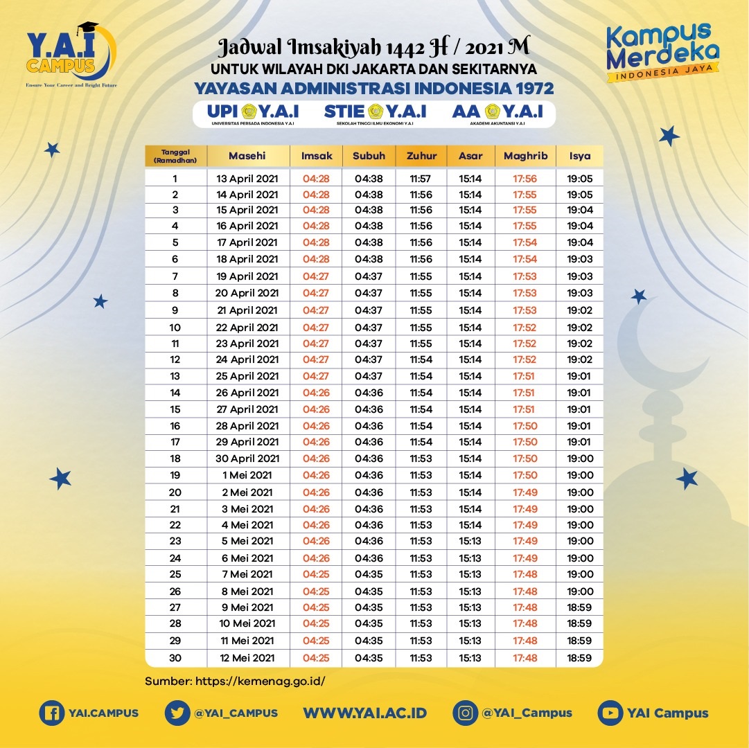 Gimana puasa pertama dan kedua? Masih ada yang telat bangun sahur atau masih gak tau jam berapa buka puasa? Berikut Jadwal Imsakiyah Ramadhan 1442H yang bisa kalian save untuk panduan Jadwal ibadah.