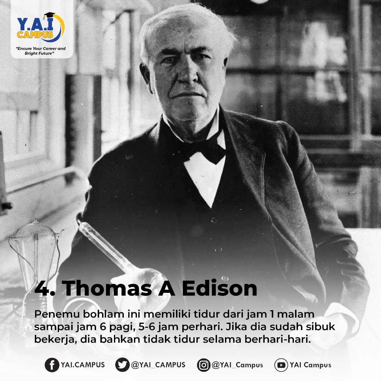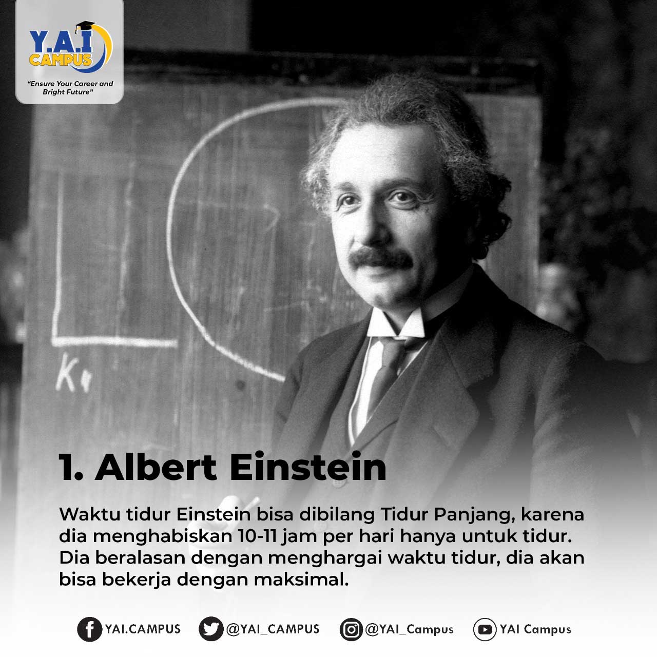 Y.A.I Friends! Jam tidur rata-rata manusia yaitu 7-9 jam per harinya untuk tetap bugar, tapi para ilmuwan genius ini memiliki waktu tidur yang tidak biasa loh. Berikut ilmuwan dengan waktu tidur yang gak biasa, apakah jam tidur kalian sama dengan ilmuwan yang akan kita bahas? Yuk, kita simak informasinya. Kita juga tetap menghimbau kepada Y.A.I Friends dan keluarga untuk #dirumahaja selama masa PSBB transisi. Mari tingkatkan disiplin, ingatkan sesama, saling menjaga, bersama kita putuskan rantai COVID-19. Jalankan terus Memakai masker, Mencuci tangan, dan Menjaga jarak. Dan yang terpenting batasi aktivitas keluar rumah hanya untuk keperluan esensial. . . . www.yai.ac.id Y.A.I Campus (UPI Y.A.I - STIE Y.A.I - AA Y.A.I) . "Ensure Your Career and Bright Future" #YAICampus #UPIYAI #STIEYAI #AAYAI #KampusStrategis #KampusFavorit #KampusBertarafInternasional #Kuliahdijakarta