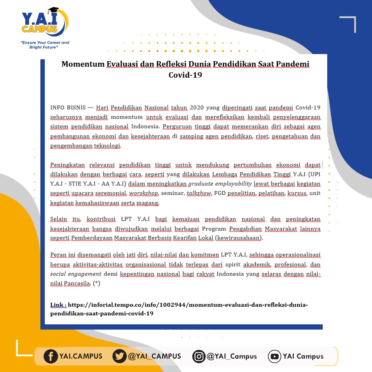 Hardiknas seharusnya menjadi momentum untuk mengevaluasi dan refleksi kembali terkait penyelenggaraan sistem pendidikan nasional kita. Pendidikan yang berkualitas diperoleh ketika kegiatan belajar dan mengajar saling berhubungan. Pengajaran harus memengaruhi pembelajaran, dan pembelajaran harus memengaruhi pengajaran. Dalam hal ini kita melihat bahwa mengajar lebih dari sekadar memberi tahu, dan belajar lebih dari sekadar mendengarkan. Perguruan tinggi dapat memerankan diri sebagai agen pembangunan ekonomi dan kesejahteraan disamping agen pendidikan, riset, pengetahuan, dan pengembangan teknologi. Di depan memberi teladan, di tengah memberi semangat, di belakang memberikan dorongan.
