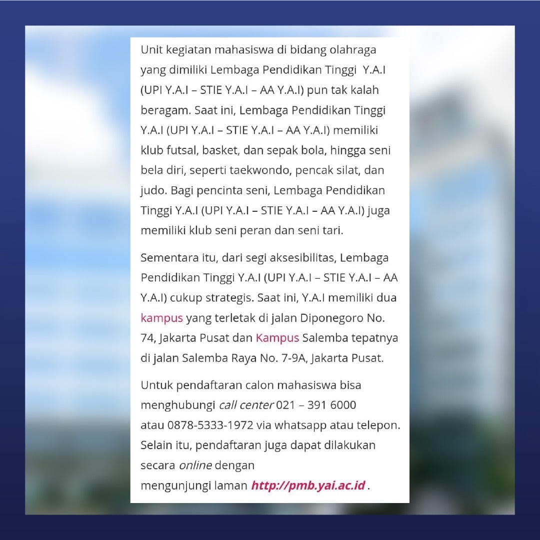#YAICampus #UPIYAI #STIEYAI #AAYAI #KampusStrategis #KampusFavorit