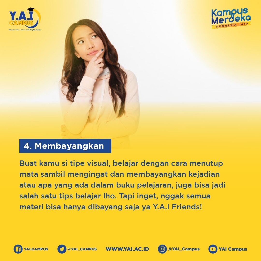 Jika kamu salah satu tim gaya belajar visual, berikut ini tips yang bisa kamu coba supaya belajarnya lebih efektif lagi. Yuk kita simak ulasannya...