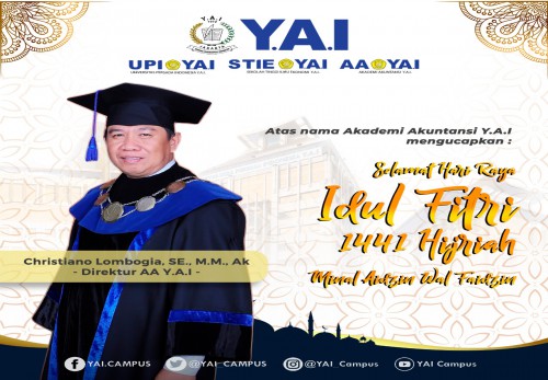 Idul Fitri tahun ini berbeda dari tahun-tahun sebelumnya. Tahun ini takbir itu tetap menggema, tapi bukan di jalan-jalan. Takbir itu kini bergaung di tiap-tiap rumah & masjid. Di rumahku, ibadahku. Di rumahmu, ibadahmu. Kita tetap beribadah, meski hanya di rumah. Bila Idul Fitri adalah lentera, izinkan membuka tabirnya dengan maaf agar cahayanya menembus jiwa fitrah dari tiap khilaf. Kami segenap Keluarga Besar Yayasan Administrasi Indonesia 1972 dan Lembaga Pendidikan Tinggi (UPI Y.A.I - STIE Y.A.I - AA Y.A.I ) mengucapkan: Selamat Hari Raya Idul Fitri 1441H. Minal aidin walfaizin. Mohon maaf lahir dan batin. TAQOBBALALLAHU MINNA WA MINKUM, BARAKALLAHU FIKUM...