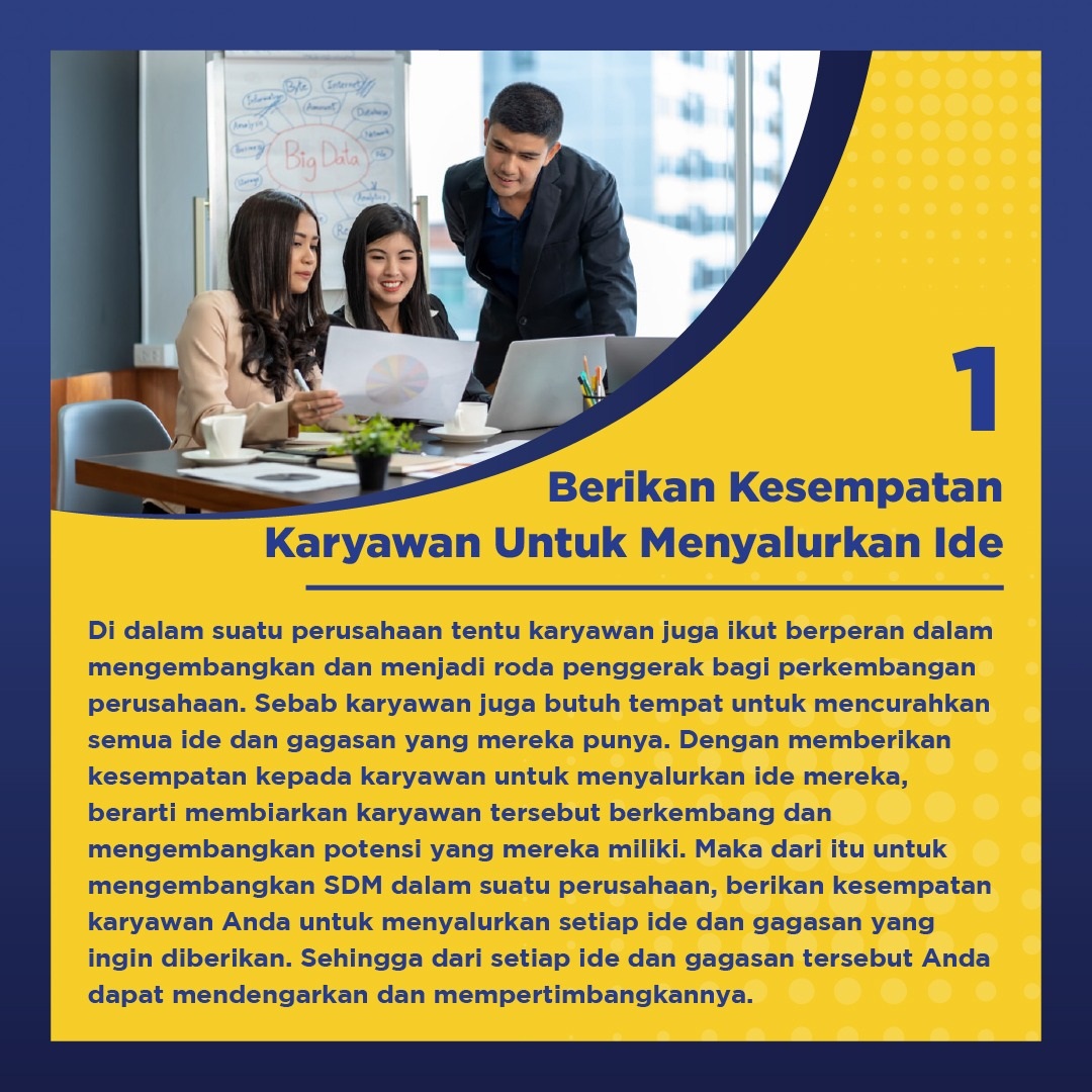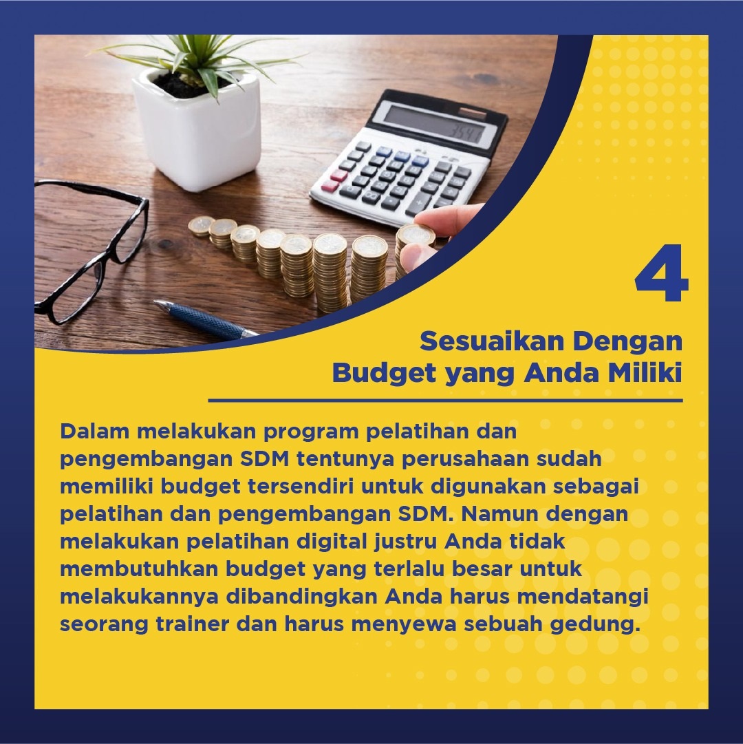 Kamu dapat melakukan pembelajaran digital melalui webinar, simulasi, video pelatihan, dan lain sebagainya. Dengan adanya langkah pengembangan SDM secara digital, secara tidak langsung perusahaan dapat menghemat biaya pelatihan maupun biaya perjalanan.