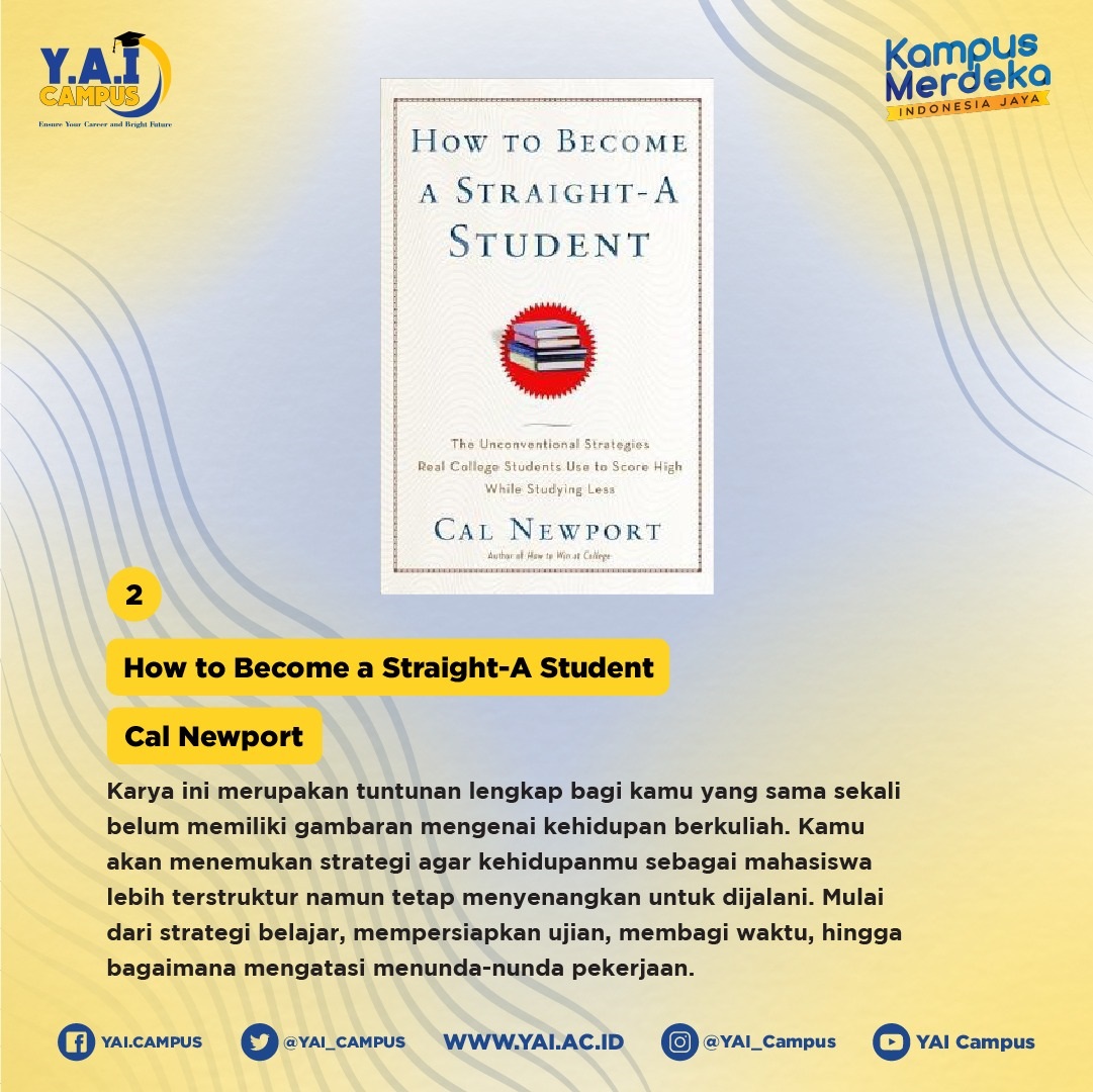 Masa kuliah adalah waktu yang tepat untuk mengeksplorasi banyak hal, termasuk untuk menambah wawasan lewat buku. Ada banyak sekali buku populer di dunia yang disebut-sebut memberikan gagasan dan wawasan yang berguna untuk diterapkan dalam kehidupan sehari-hari. Beberapa di antaranya mungkin merupakan karya klasik yang dibaca oleh semua orang. Nah, berikut adalah rekomendasi buku-buku yang wajib dibaca setelah menjadi mahasiswa yuk kita simak.