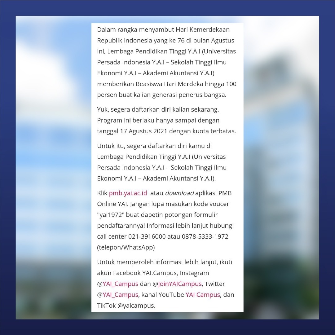 #YAICampus #UPIYAI #STIEYAI #AAYAI #KampusStrategis #KampusFavorit