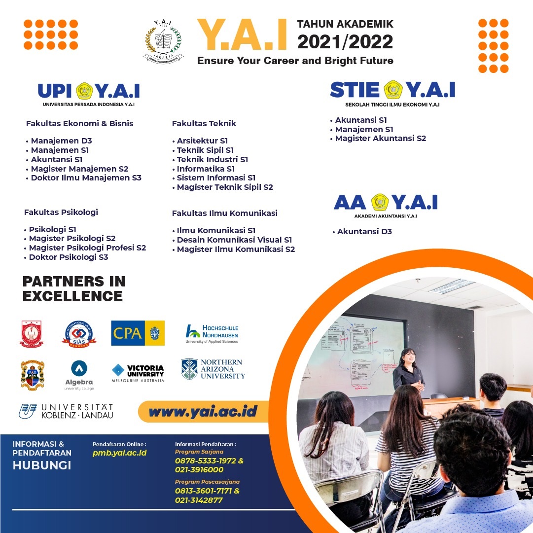 Terbatasnya kapasitas dan tingginya persaingan masuk PTN yang begitu ketat membuat calon mahasiswa perlu memikirkan alternatif lain dalam melanjutkan studi ke Pendidikan Tinggi. Perguruan Tinggi Swasta (PTS) dapat menjadi pilihan yang bisa ditempuh. Jangan salah, banyak PTS menyediakan program studi berkualitas tidak kalah dari PTN salah satunya Y.A.I Campus.