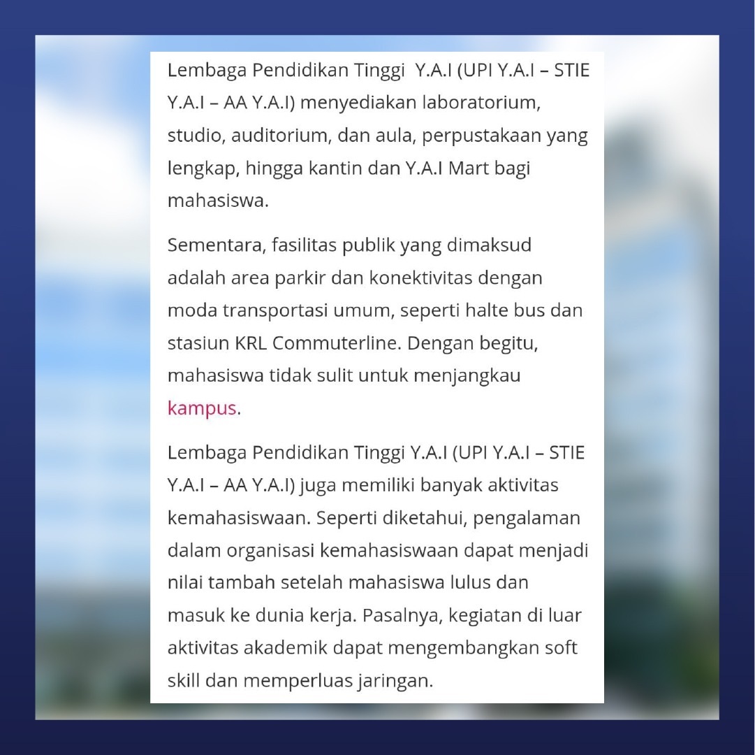 #YAICampus #UPIYAI #STIEYAI #AAYAI #KampusStrategis #KampusFavorit