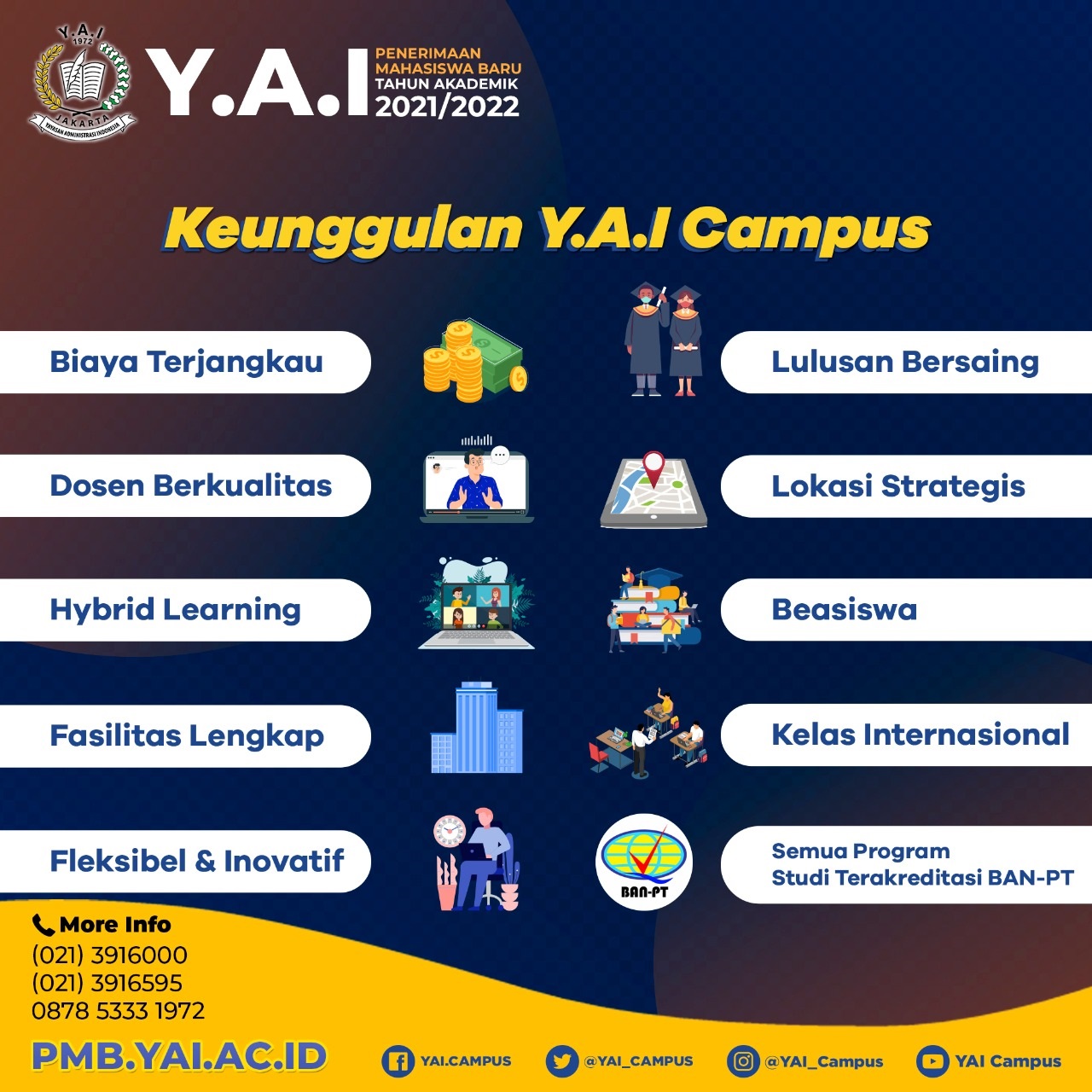 #InfoKuliah #PenerimaanMahasiswaBaru #ProgramBeasiswa #YAICampus